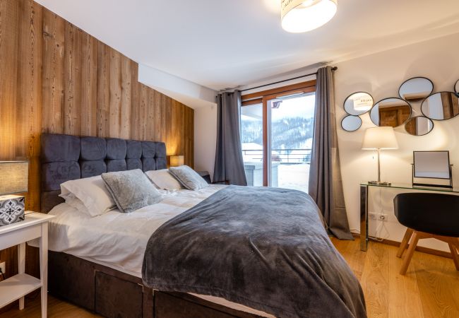 L’appartement Abela est situé dans le domaine privé des Peyrons, il occupe tout le premier étage d’une petite résidence chalet récente de 2018.
